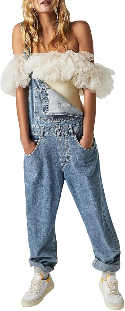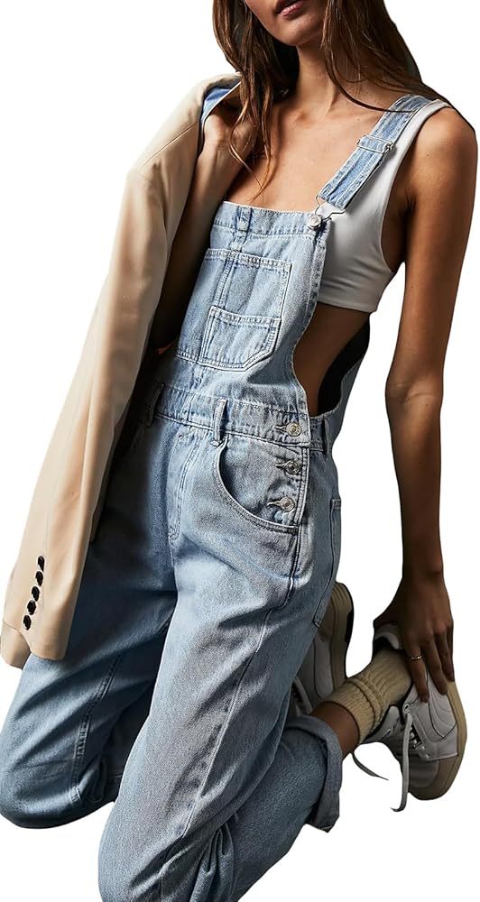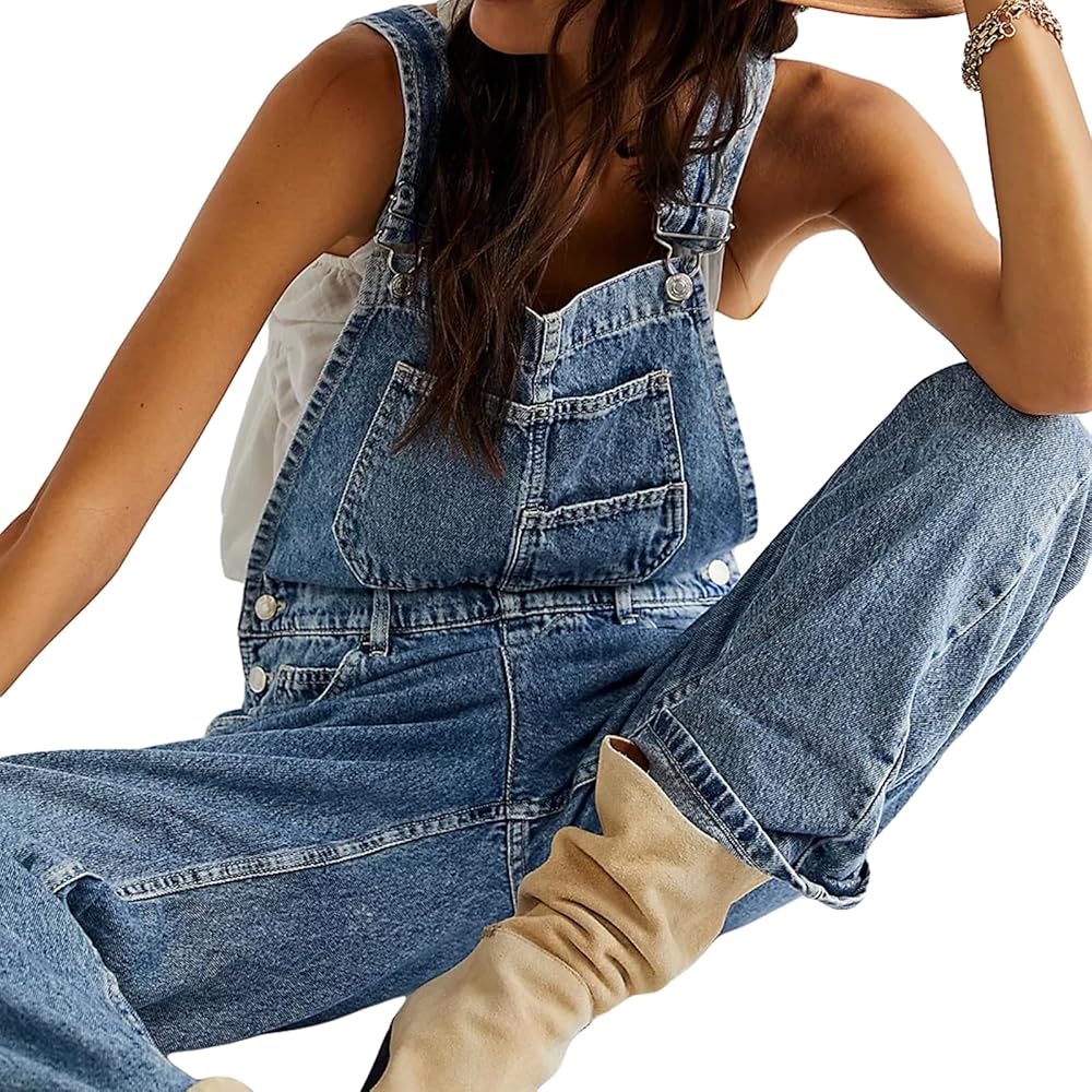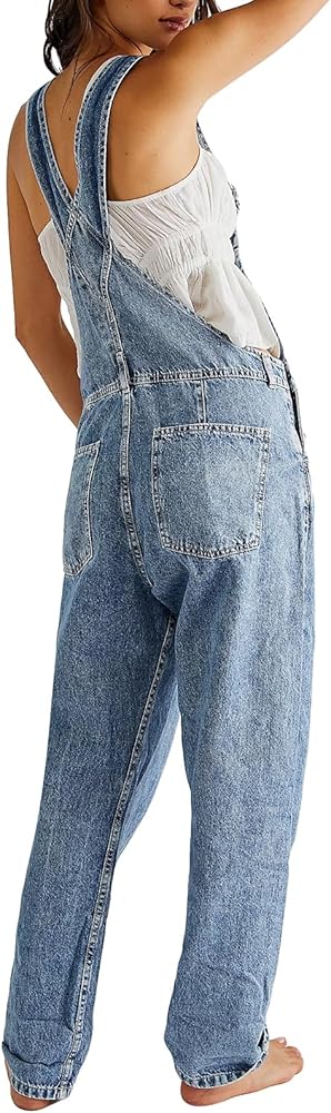 Women Denim Long Jumpsuit Casual Spaghetti Strap Wide Leg Romper Pants Summer Baggy Bib Overalls