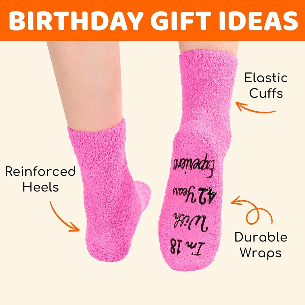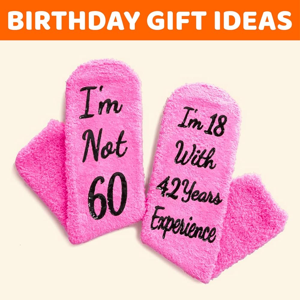 60TH BIRTHDAY GIFTS FOR HER: Celebrate with our "I'm Not 60 I'm 18 With 42 years Experience" socks, perfect for any occasion. They are ideal for Birthday presents, Christmas surprises, or playful White Elephant gifts.