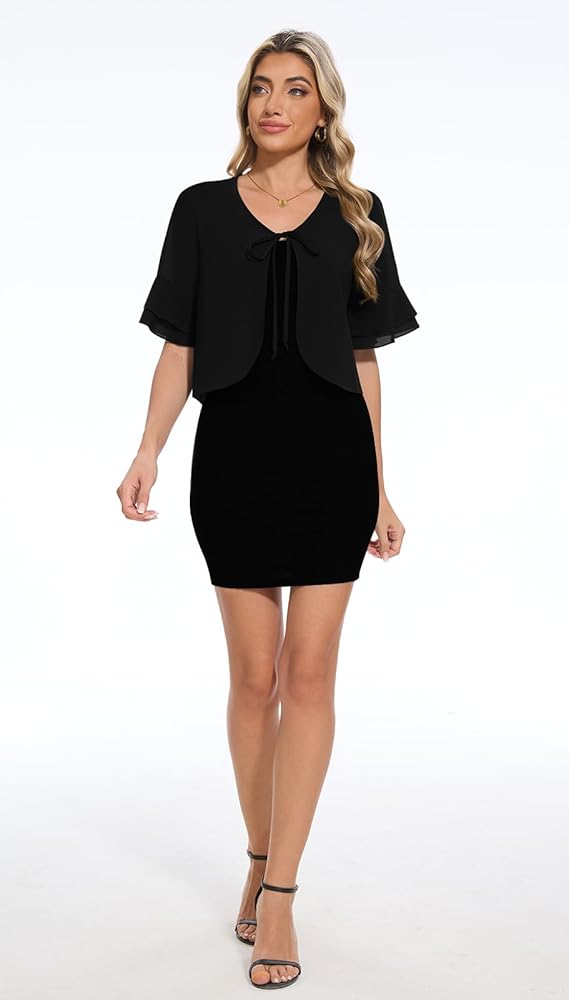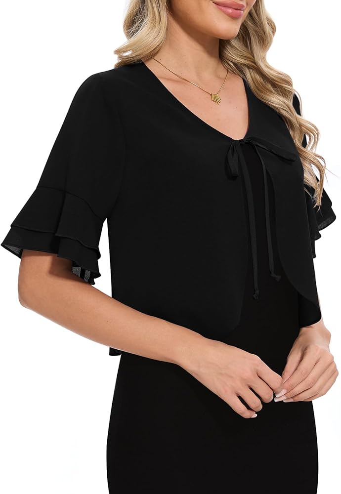 Elevate your everyday style with the Leafsay Womens Tie Front Cardigans Chiffon Bolero Ruffle Short Sleeve Sheer Shrug for Dresses,a perfect fusion of comfort and fashion.Designed with the modern woman in mind,this Shrug is crafted from high-quality materials that are soft,stretchy,and breathable,ensuring a cozy warmth during the cooler months while maintaining a light and comfortable feel throughout the day