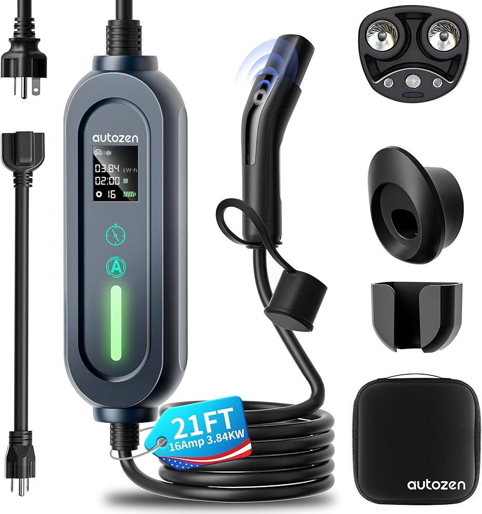Portable & Versatile: With an easy to organize 16ft cable offers flexibility for both home and on-the-go charging. Comes with a cable holder, control box holder, and a fancy carry bag, making it easy to charge your EV anywhere, anytime.