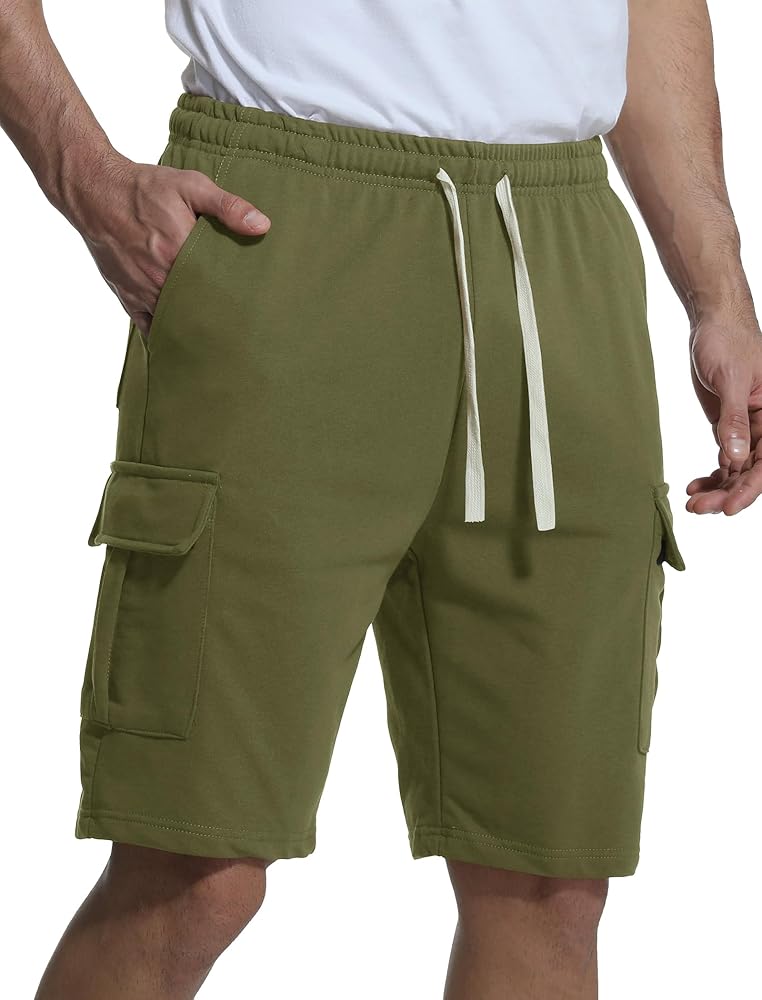 Comfortable Fabric -- These men's athletic shorts are made from 80% cotton and 20% polyester,these men's athletic shorts offer stretchy flexibility,soft feel and a relaxed fit to keep you cool during daily wear or active pursuits.