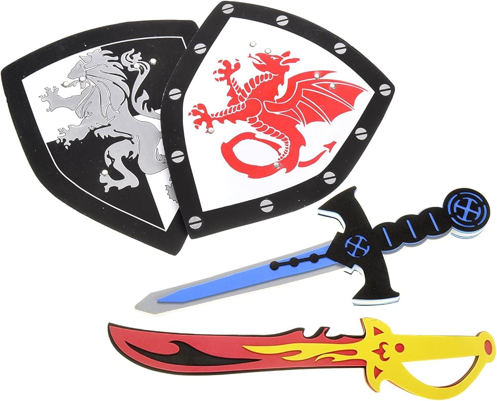 Sword In The Foam | The sword and shield play set comes with two unique foam swords and shield. Durable for extended play and sturdy for quality play.