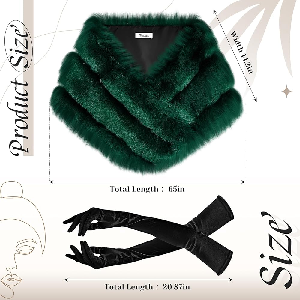 Serving You for a Long Time: the shawl is made of reliable artificial fur material, plush and soft, which will not give you too much burden, keeping you warm in cold weather; Long stain gloves are made of satin milk fiber, smooth and comfortable to wear