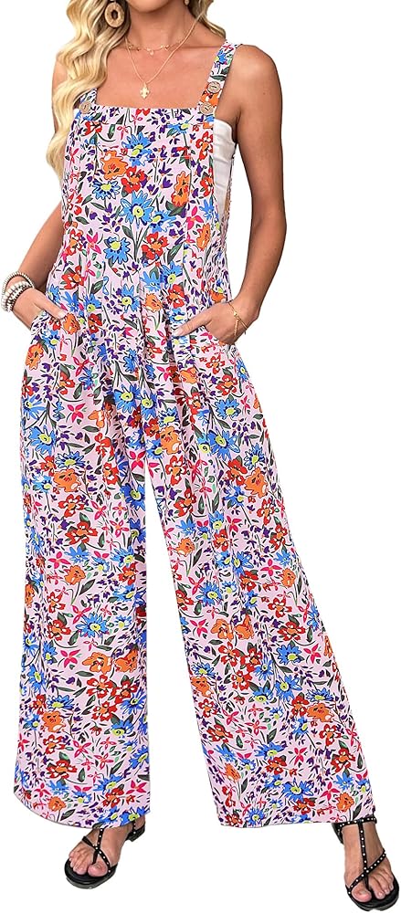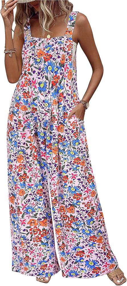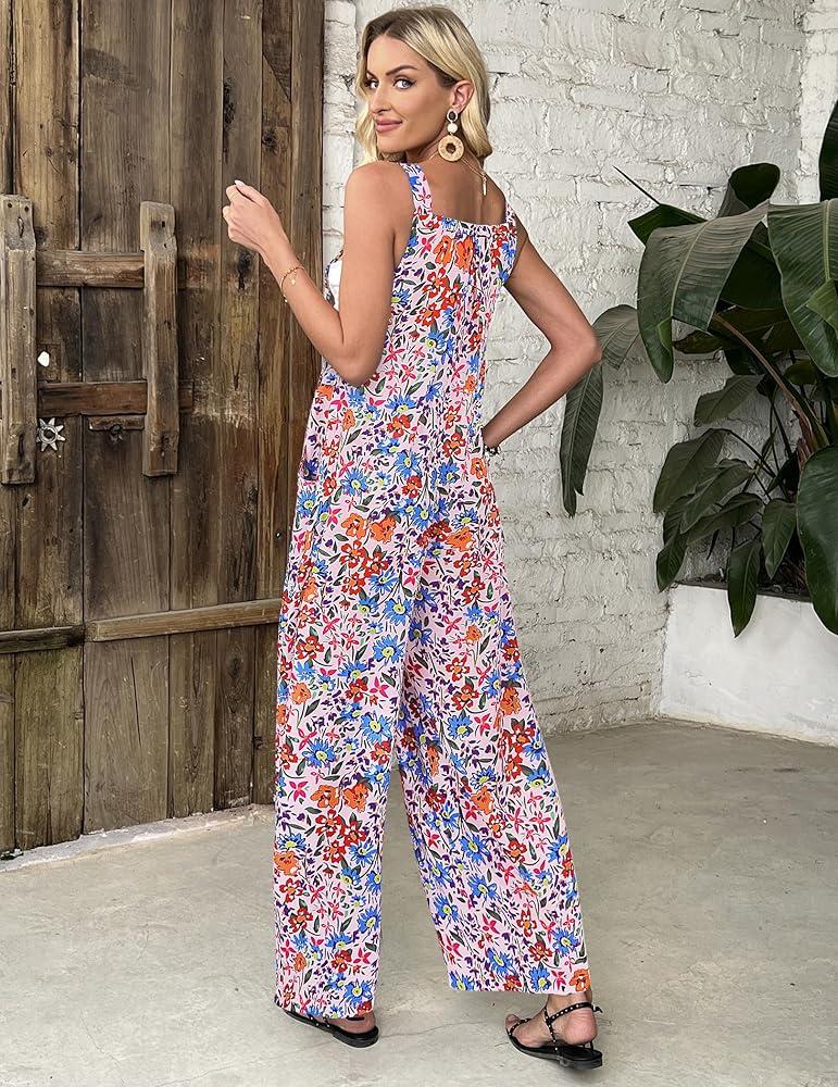 Fashionable Design:Featuring a bohemian-inspired print, this dressy jumpsuit combines dual pockets with adjustable buttoned shoulder straps. Its sleeveless, wide-leg, minimalist silhouette suits every body type, ensuring effortless comfort and style