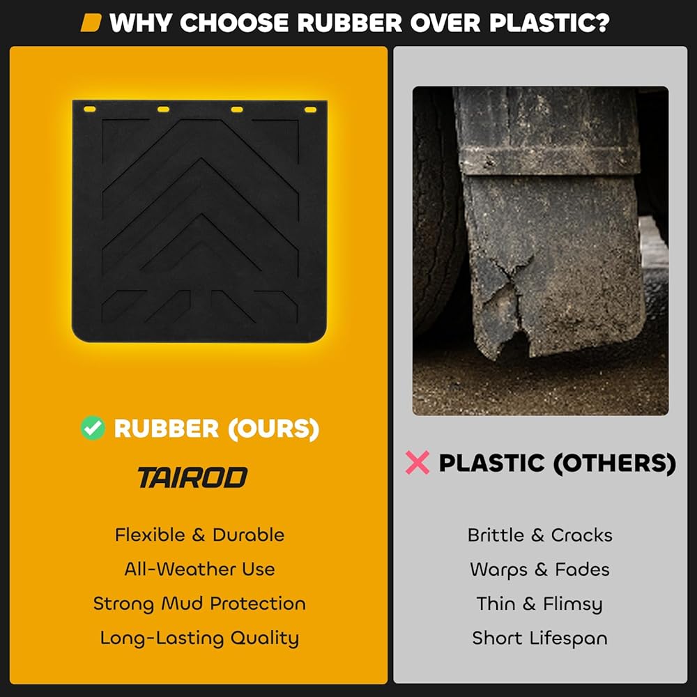 Mud Flap Function : Maintain a clean and neat truck body to enhance its appearance. Prevent soil splashes on the vehicle or individuals, preserving the beauty of both. Shield the pull rod and ball head from soil, preventing premature rust. Minimize wheel noise and enhance overall truck driving safety. It serves as the optimal choice for safeguarding truck tires and adding a decorative touch