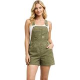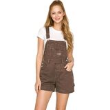 Short, bib-and-brace overalls with a 90s workwear inspired silhouette. Adjustable, thick racerback straps connect to a functional, multi-pocket bib with a Lana Roux logo patch. High cut, rigid waist with button closures on both sides. Relax fit, with a 5-pocket construction and tool loop detail.