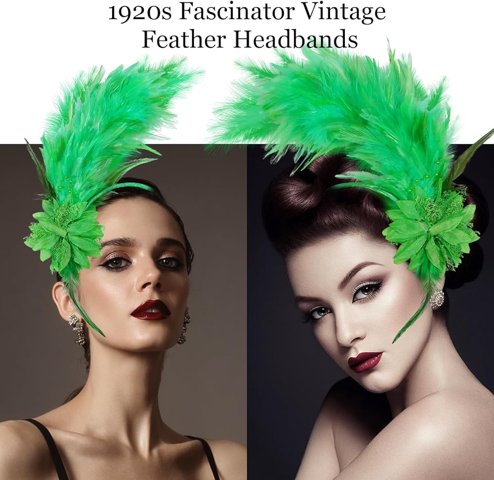 1920s Feathered Headbands: Delicate and elegant feathered headband accessories can add endless glamor to your party and are easy to match with any of your vintage or modern outfits.