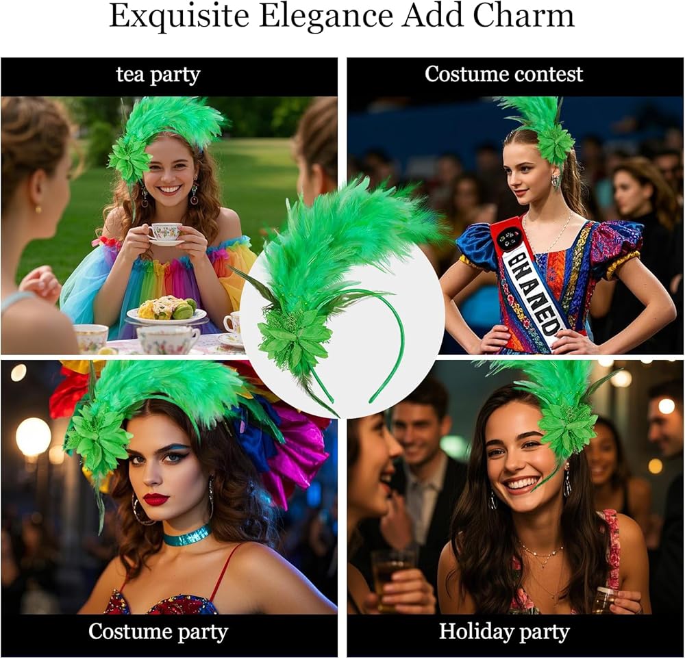 Real Soft Feathers: The vintage headpiece is made of real feathers in gorgeous colors, beautifully smooth and textured, and overall lightweight. the feathers do not fall out and can be reused.