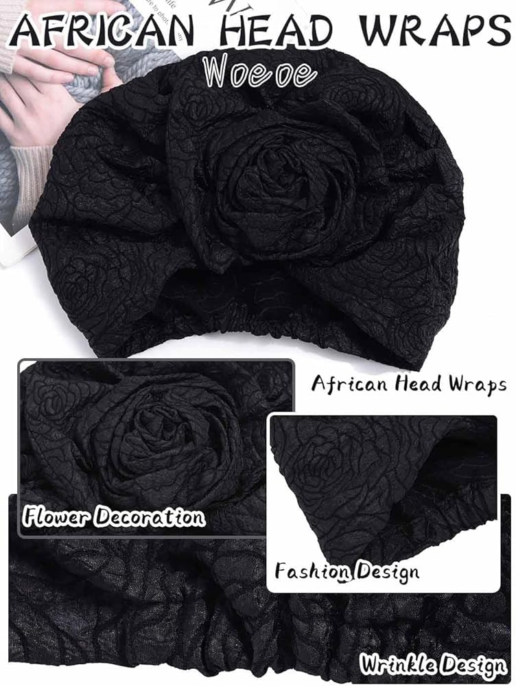 Flower woman turban head circumference is around 19.6 - 23 inch (50 - 58 cm); It has good elasticity and it is easy to wear and adjust. The one-size-fits-most design ensures a snug and secure fit, allowing you to effortlessly create various styles to suit your mood or occasion.