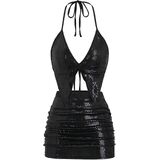 Elevate your wardrobe with this stunning y2k 2 Piece skirt set. The backless halter crop top flaunts your curves while exuding a playful yet sophisticated vibe. Paired with a ruched bodycon mini skirt, this set hugs your figure in all the right places, accentuating your curve and charm
