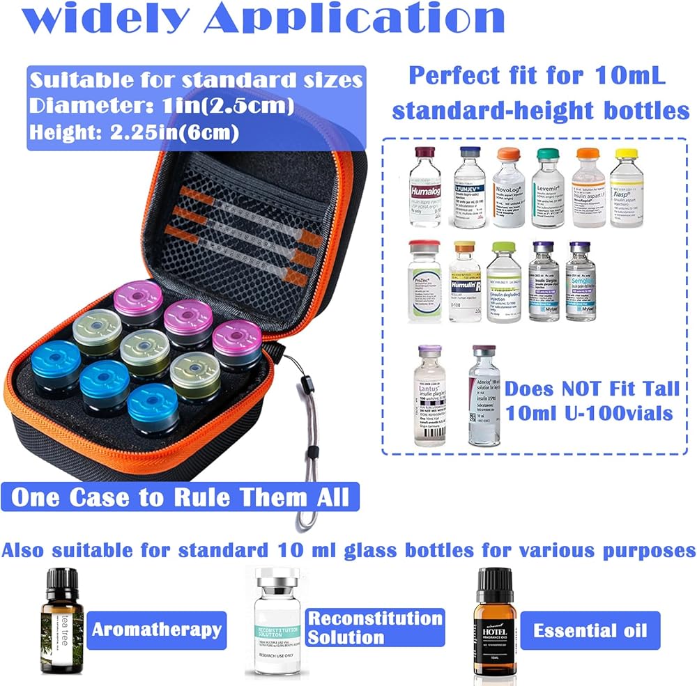 【PLEASE NOTE】This product is not only compatible with standard short 10 ml U-100 vials with a height of 2.25 inches and a width of 1 inch but also fits taller 10 ml U-100 ml vials.