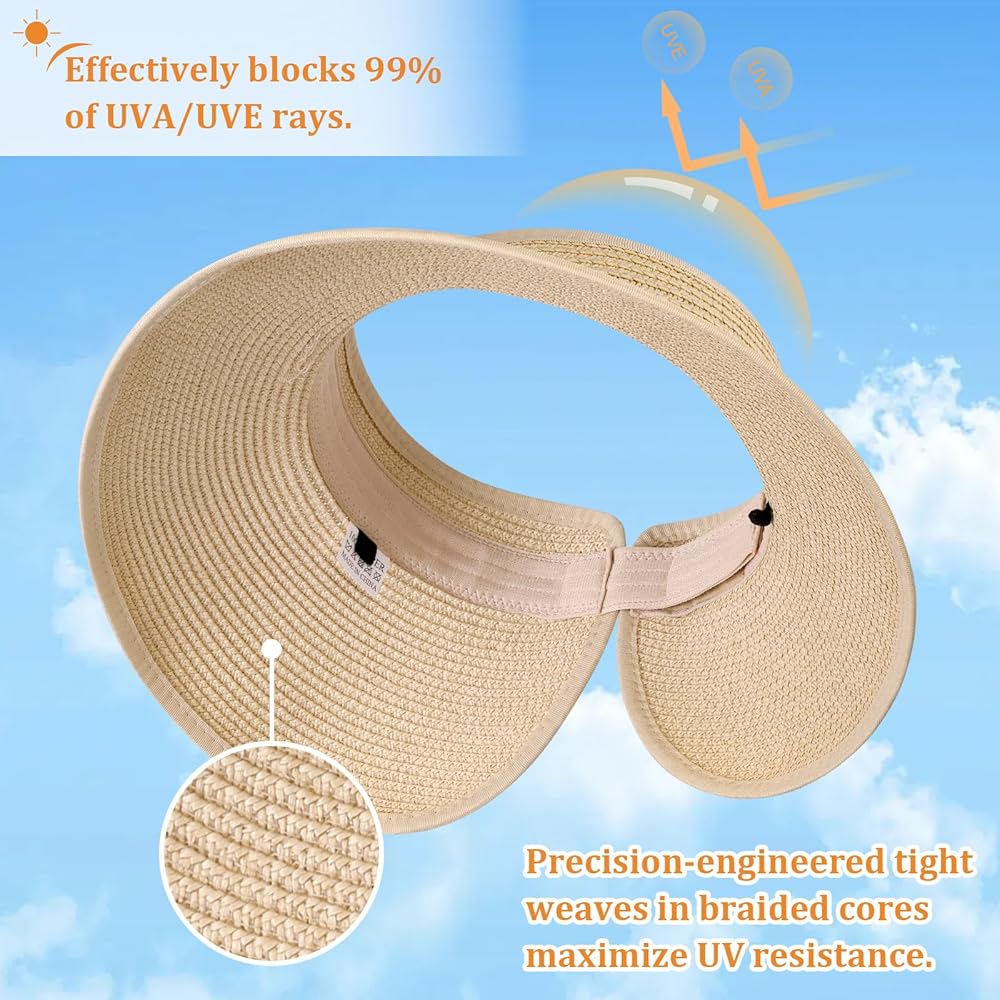 Superior Sun Protection – Made from high-quality, this women's sun visor straw hat provides excellent UV protection for your face and neck. The stylish neutral colors complement any outfit.