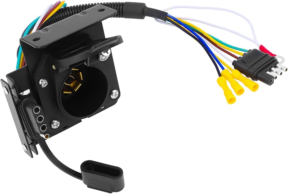 Function : The trailer adapter converts vehicle-side 4 way flat to 7 way blade trailer-side socket, making tight connection between vehicle socket and trailer plug. Don't need splicing of wires,transfers the power from the vehicle to trailer