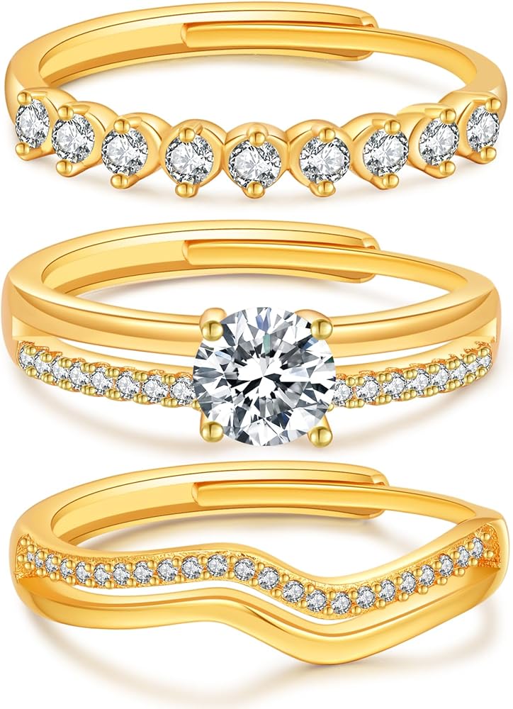 Senteria 3Pcs Gold Rings For Women Non Tarnish Stackable Rings For Women Adjustable 14K Gold Plated Rings set with Cubic Zirconia Thumb Ring Set for Statement Promise Wedding Engagement