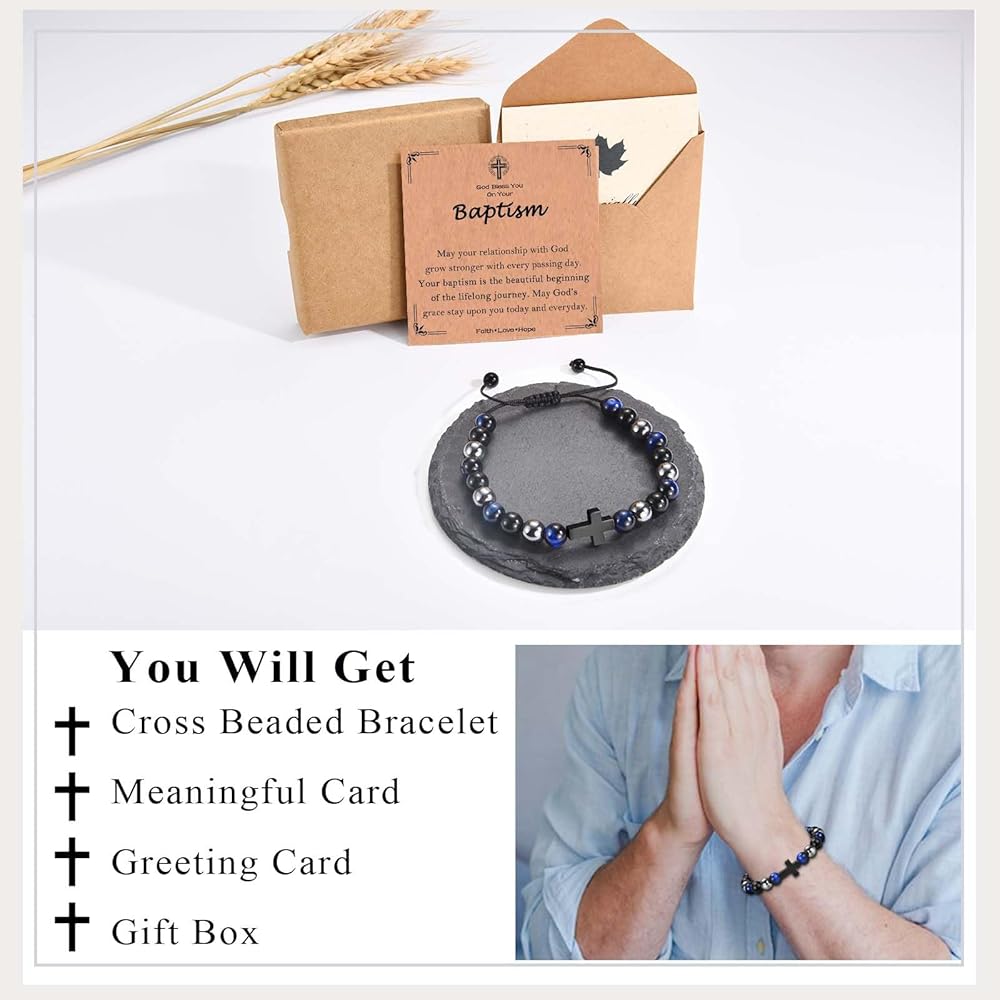 Cross Bracelet Baptism Confirmation First Communion Gifts for Boys Kids, Easter Basket Stuffers Christian Catholic Religious Gifts for Teens Boys Kids Men with Inspirational Card