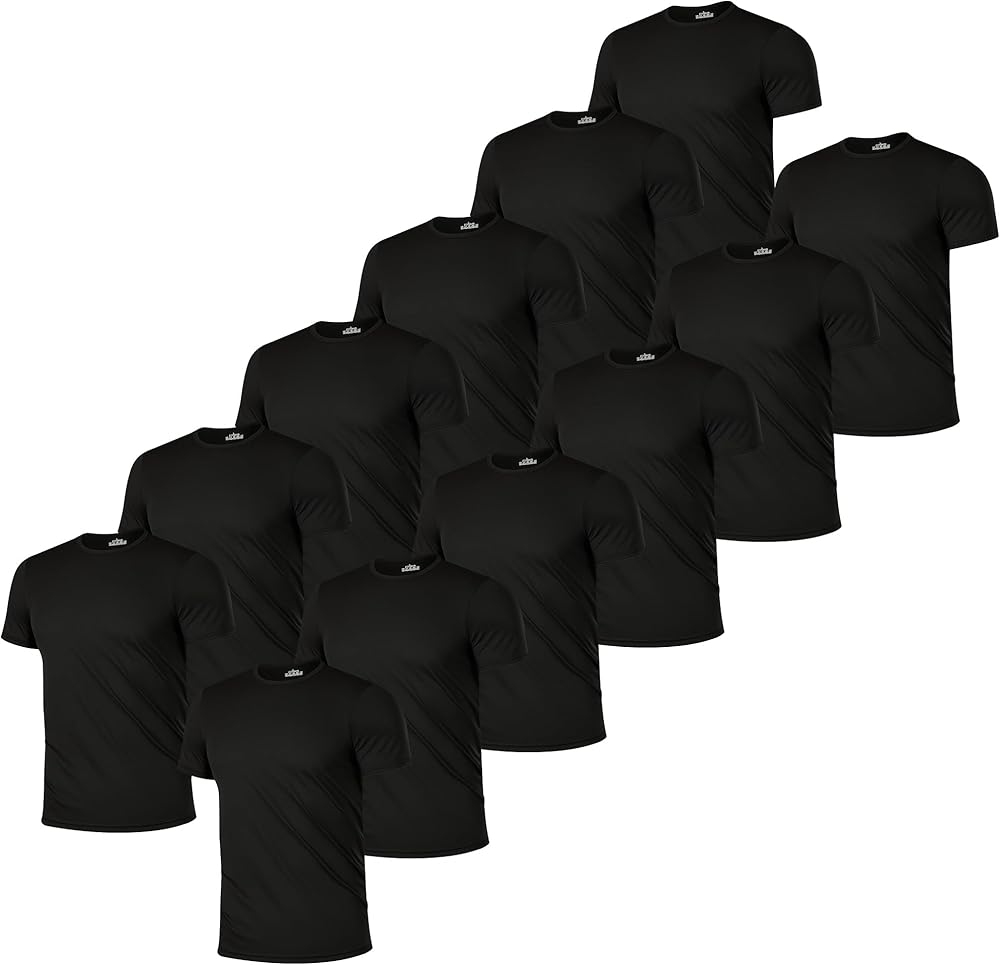 Pack Of 12 Pieces black:Each pack contains 12 black short sleeves, black clothes are very stain resistant, and is a daily error free color, can meet the needs of different sports or daily clothing, but also can provide backup clothes for temporary situations