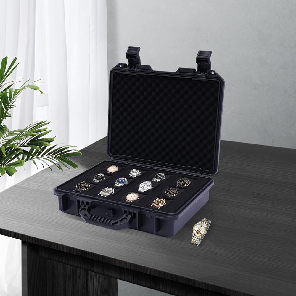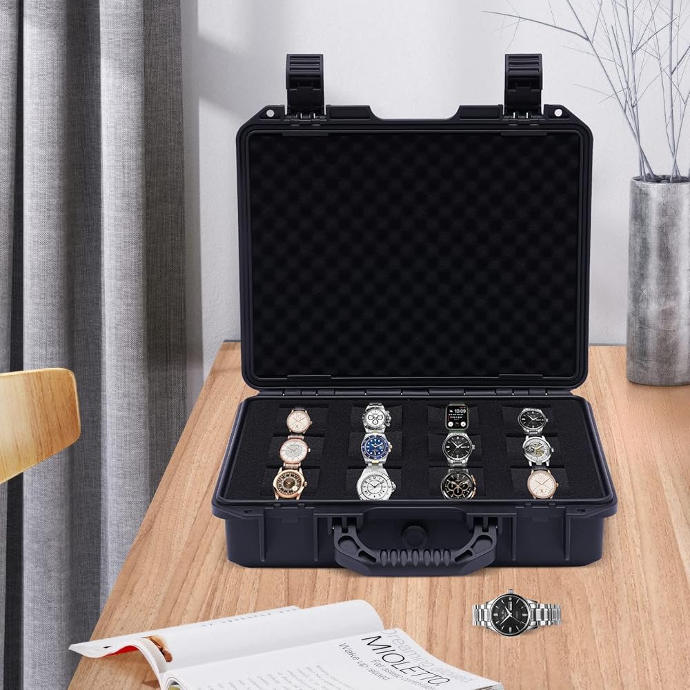 🔺【All-Around Protection】Our 12-slot watch box is mainly made of high-quality PP and 304 stainless steel materials, the inside cushion of this watch case is made of a wave sponge on the top cover, a square sponge in the middle, and a flat cotton at the bottom, with a total of three layers of sponge protection design, which can effectively protect your watch from accidents and scratches.