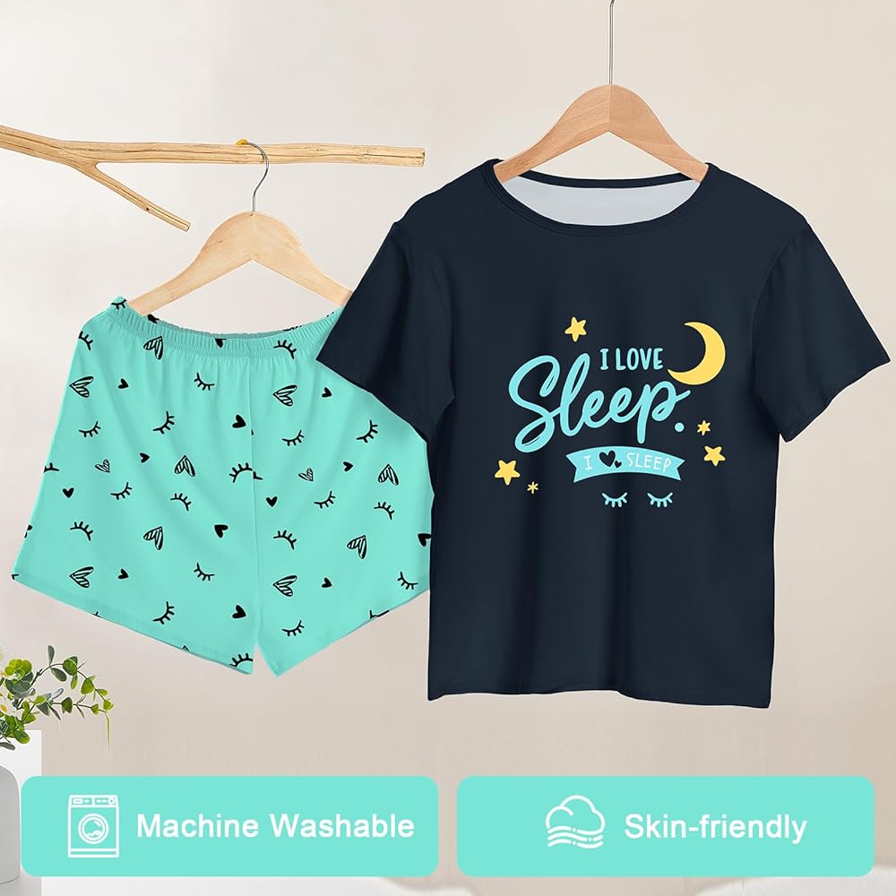 Tips: Girls pajama set is designed for girls aged 8-15, please refer to the size chart before purchase. Support machine wash, not easy to deform or fade, convenient for daily cleaning.