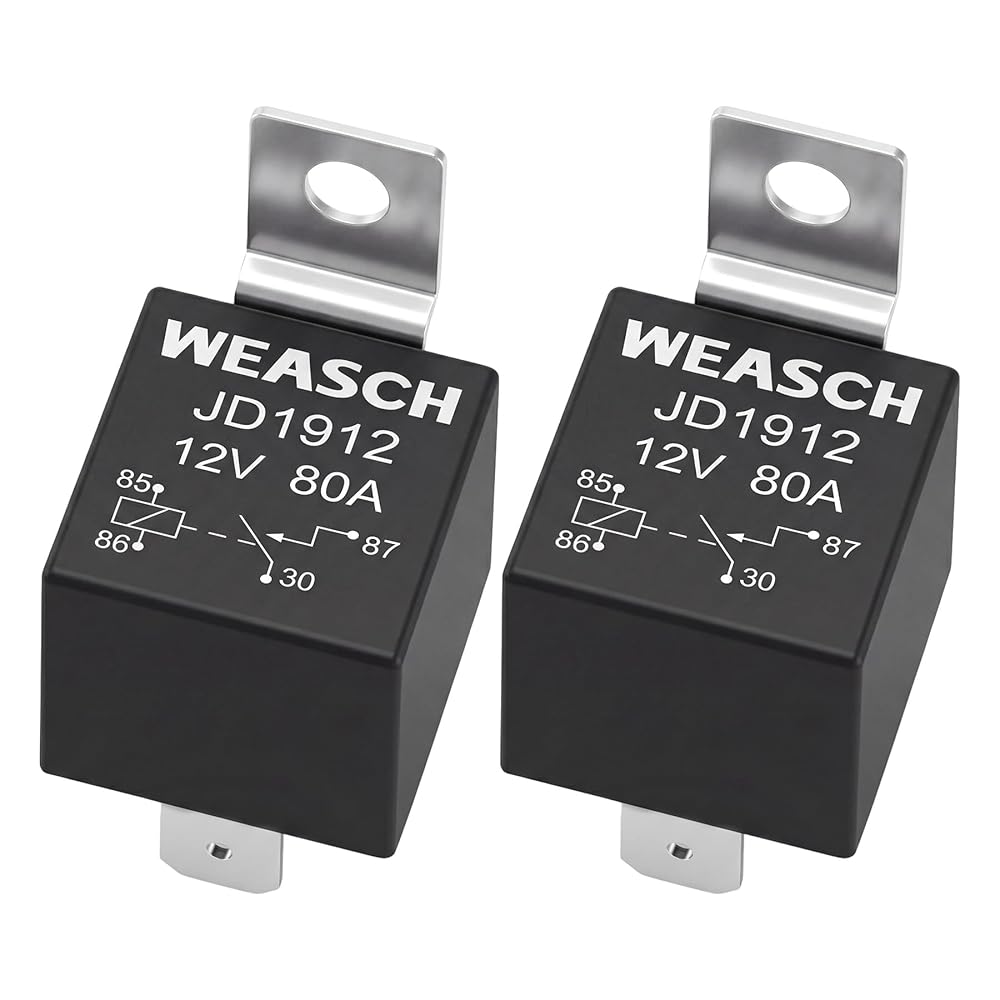 2 Pack JD1912 Car Relay, 12V 80A, 4 Pins SPST, Automotive Switches and Starters, Waterproof Relay for Boat Tractor Truck Motorcycle (2)