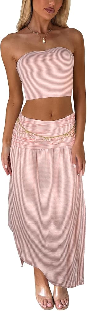 Womens Sexy Y2K Sleeveless Tube Tops Long Skirts Two-Piece Outfits Trendy Set 2025