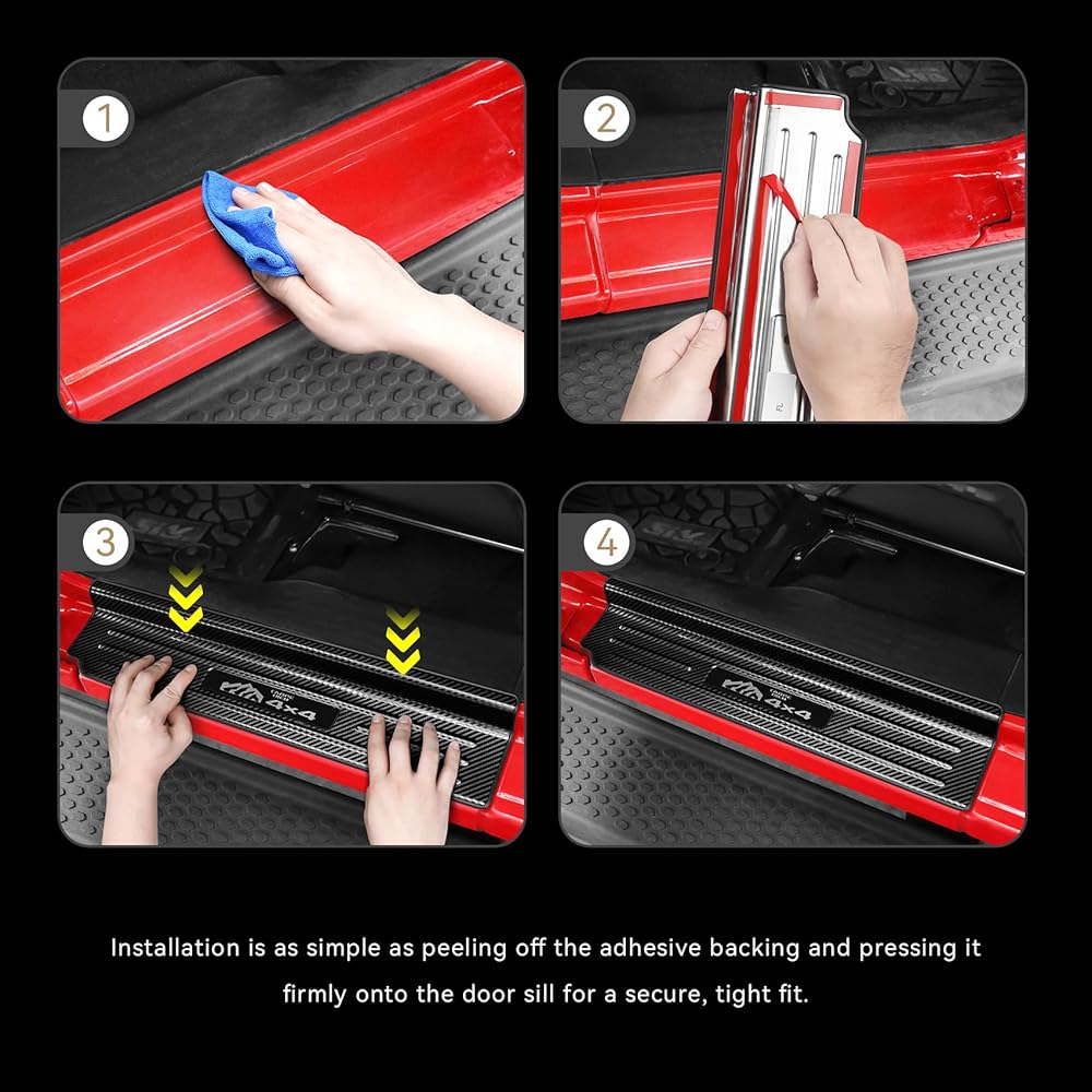 【Product Features】The door sill protector is made of premium stainless steel.It comes with double side tape on the back for you to simply stick on the original panel.They always show your charming and highlight your dear car.It will give your car a brand new unique look in minutes