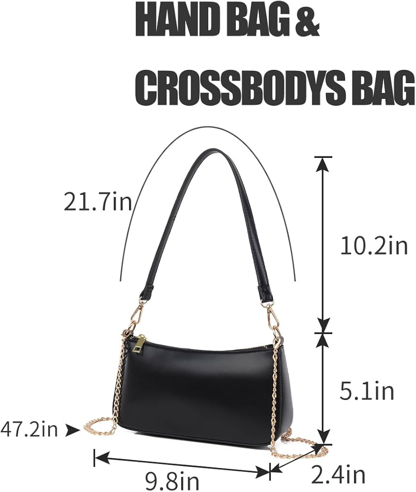 【Perfect Size】 (L) 9,8" x (W) 2.3" x (H) 5.5",handle 9.5". Shoulder Strap length : 46cm / 18",115cm / 45",Comes with 2 adjustable and removable strap, can be used as a crossbody bag or shoulder bag,can fit your daily demand.