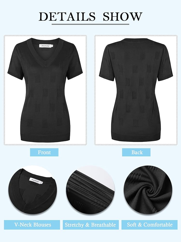 Material:70% Viscose+30% Polyester, Made with high-quality knit fabric, offering excellent breathability, soft texture, and durability for all-day comfort.Wrinkle Free and not see through,trendy piece that works for multiple seasons,Wear it alone or under a blazer