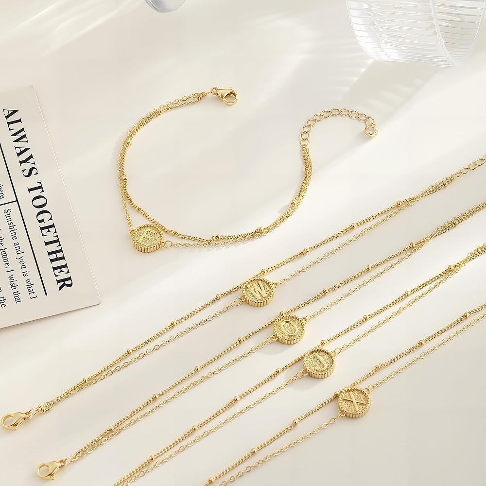 Dainty Bracelets for Women:Gold Bracelet has a unique design,with two chain,included 1 Satellite bead chain and 1 letter charm chain.You can choose letters related to your name, family and friends.You can wear it alone or with other bracelets.And bracelets are delicately designed, will no any burden to your wrist