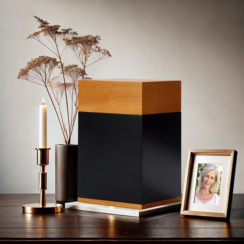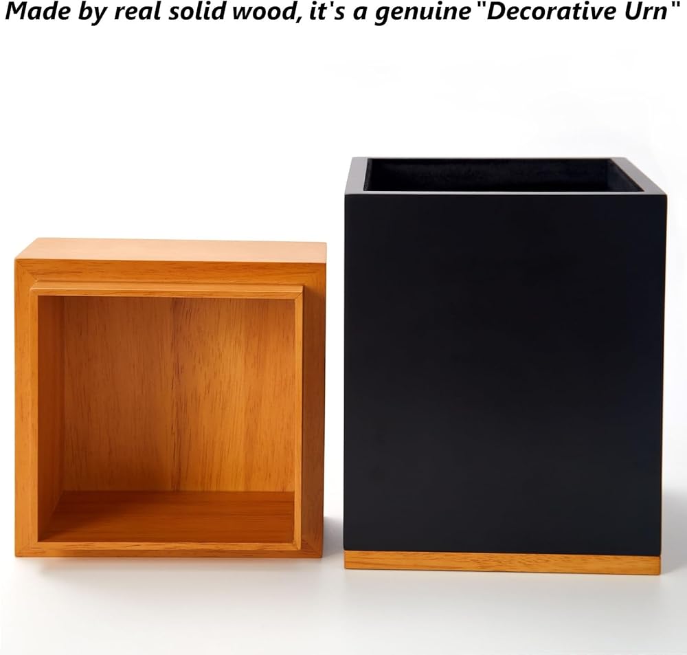 Nyutu Urn for Ashes Adult Male, 6x6x10 Inches Large Solid Wooden Urns for Human Ashes, Decorative Funeral Wood Cremation Urns for Man/Dad/Father/Mom/Female