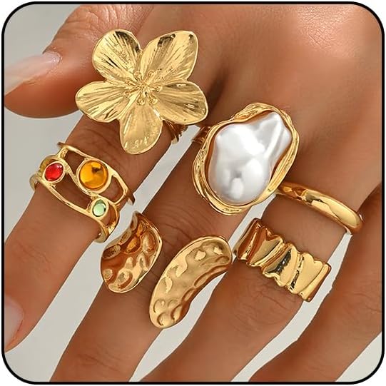 You will get 6pices statement rings, those rings come in many different styles, include flower ring, pearl ring, colorful crystal ring, dome ring, open ring, you can wear separately or stack them together