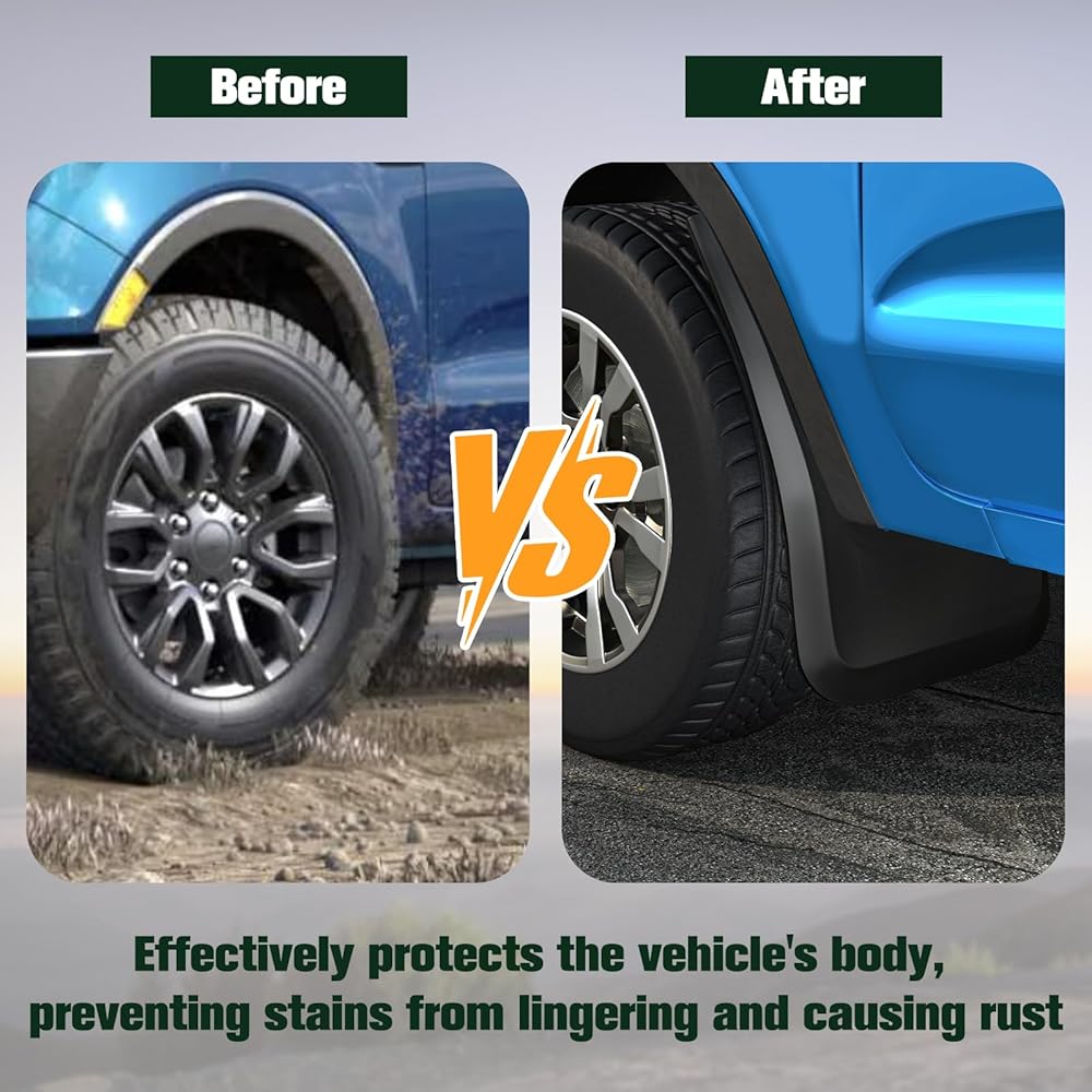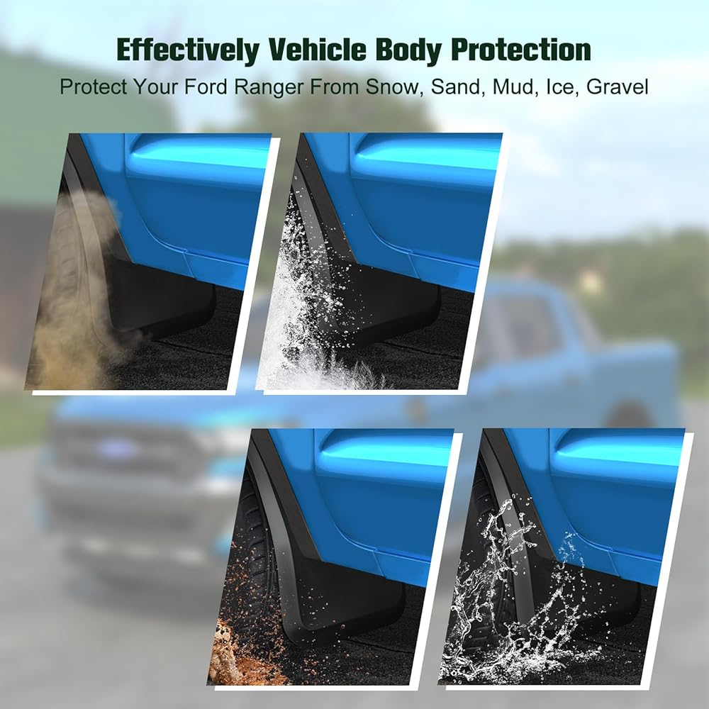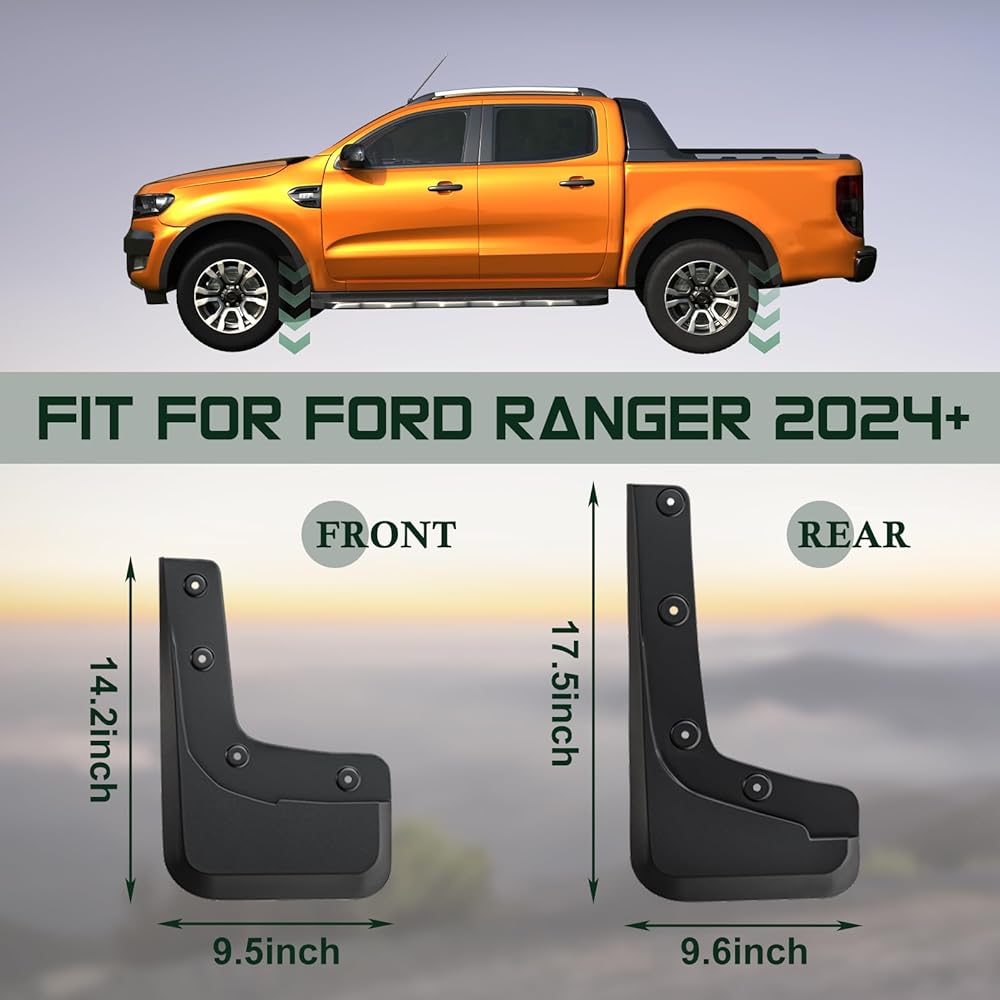 2024-2025 Ford Ranger Mud Flaps - 4PCS Front & Rear Splash Guards for XL/XLT/Lariat, No Drill Required, All Weather Protector Splash Guard Fenders, Not for Raptor (with Wheel Flare)