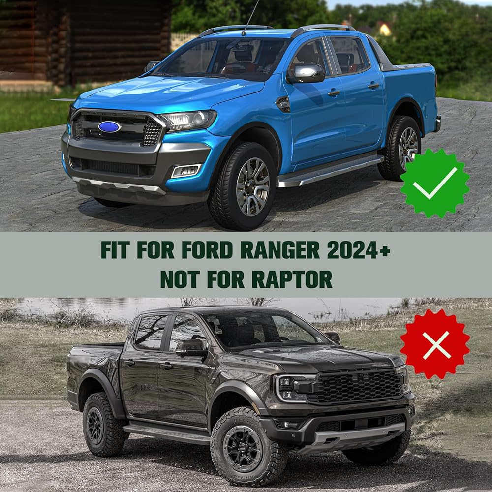 【Custom Design for 24-25 Ford Ranger】: The ford ranger mud flaps are meticulously designed for Ford Ranger 2024 - 2025 XL, XLT, Lariat, not for Raptor (with wheel flare). Precisely crafted to match the original screw holes, ensuring a precise fit with the vehicle. The sleek curvature not only enhances the aesthetic appeal but also reduces wind resistance, providing a smoother driving experience. The design of 4 mud flaps blends seamlessly with the vehicle's appearance, offering a stylish and personalized touch