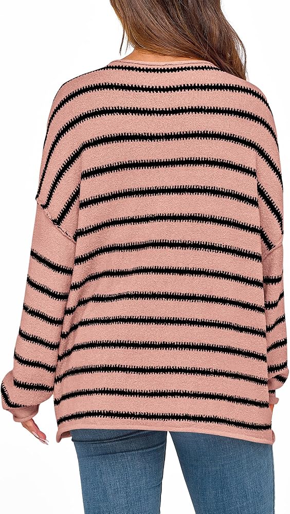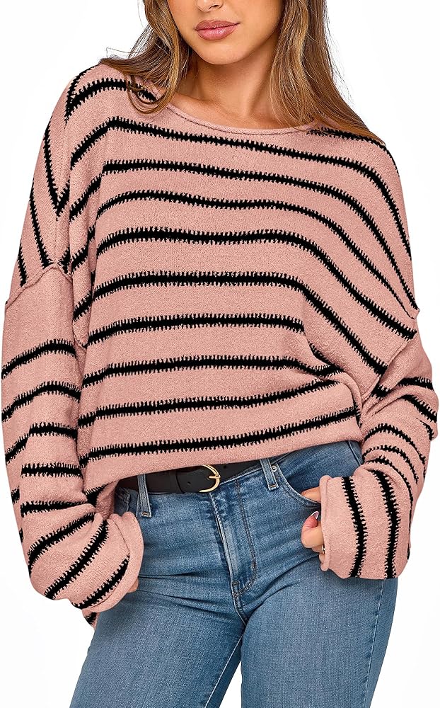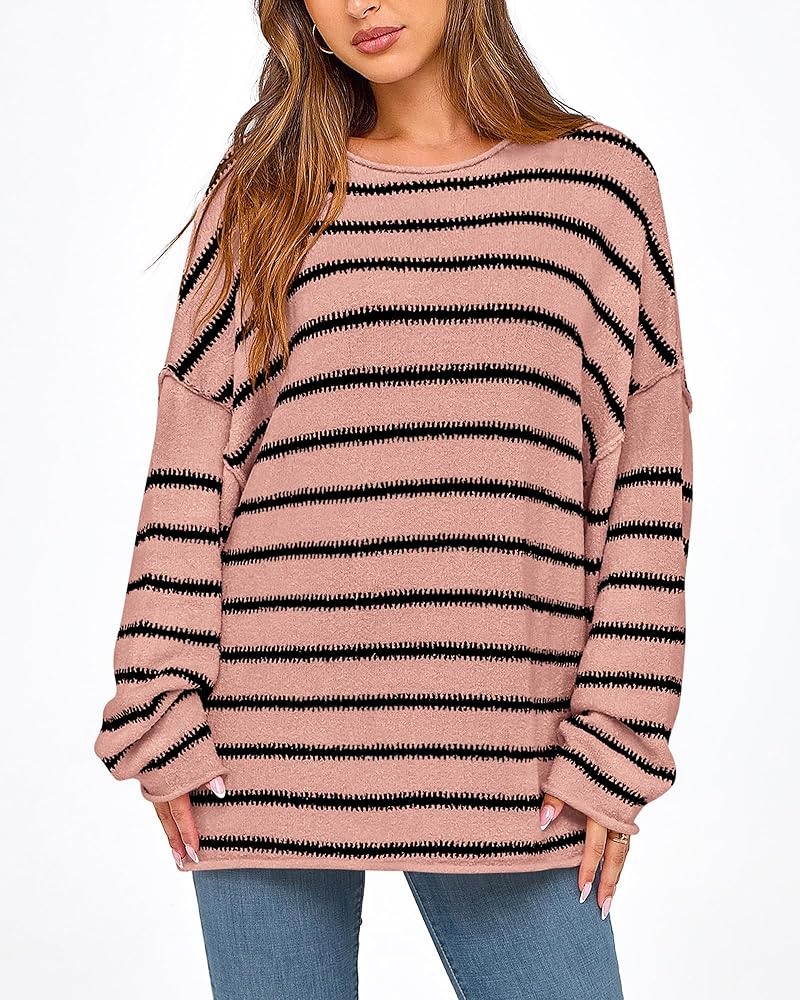 DESIGNS: The Striped Pullover Sweater Takes An Eye-Catching, Classic Striped Pattern. It Has Loose Silhouette, Stylish Drop Shoulder And Striking Stripes. Combine With Skinny Jeans Or Leggings And Boots, Creating An Chic Fall/Winter Look
