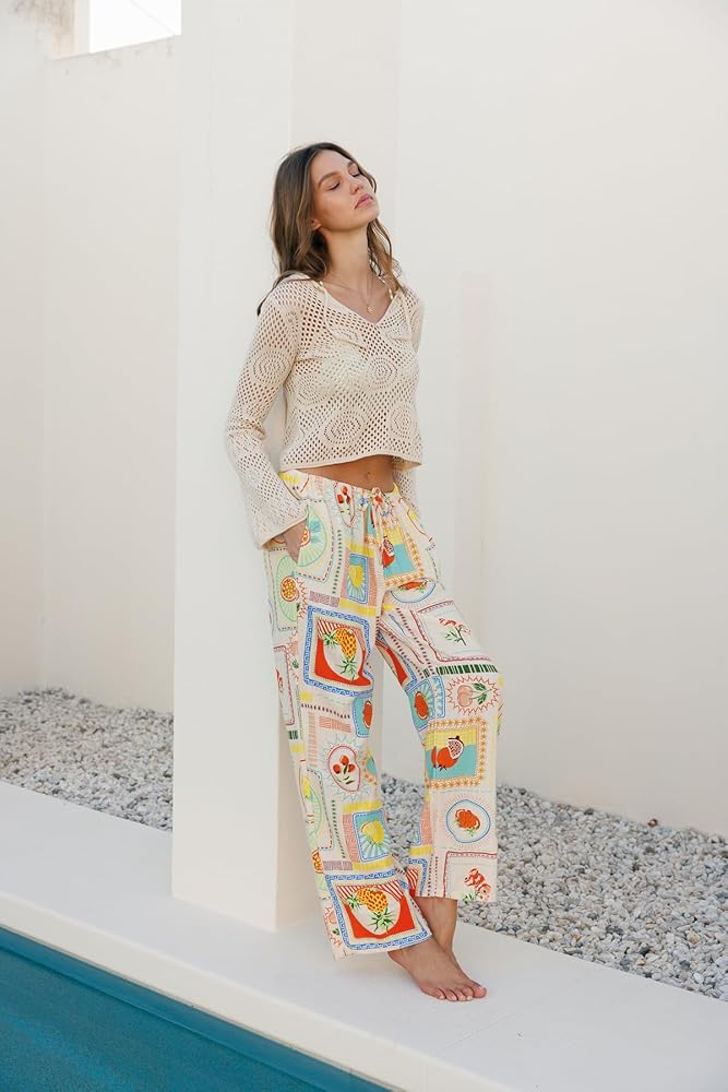 FASHION DESIGN – Have some fun in the sun with these beach pants. It features an elastic waistband with adjustable drawcord tie waist, side seam pockets, and easy relaxed fitted wide pant legs. The low-rise waist and loose flowy fit allow for full range of motion, providing comfort during wear. These stylish trousers are flattering with a sleek silhouette. Cute, chic, and comfy, these casual pants come in a variety of printed patterns.