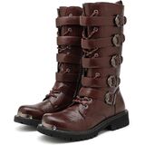 These army boots for men are designed with buckle to perfectly define your foot shape and leg shape, while the front of the shoe is reinforced with a metal reinforcement design. It is more fashionable and can also provide you with outdoor safety. Lace-closure and vintage metal buckle design, boot height: mid-calf, you can easily adjust to ensure a secure fit and free leg movement, suitable for most men's feet.