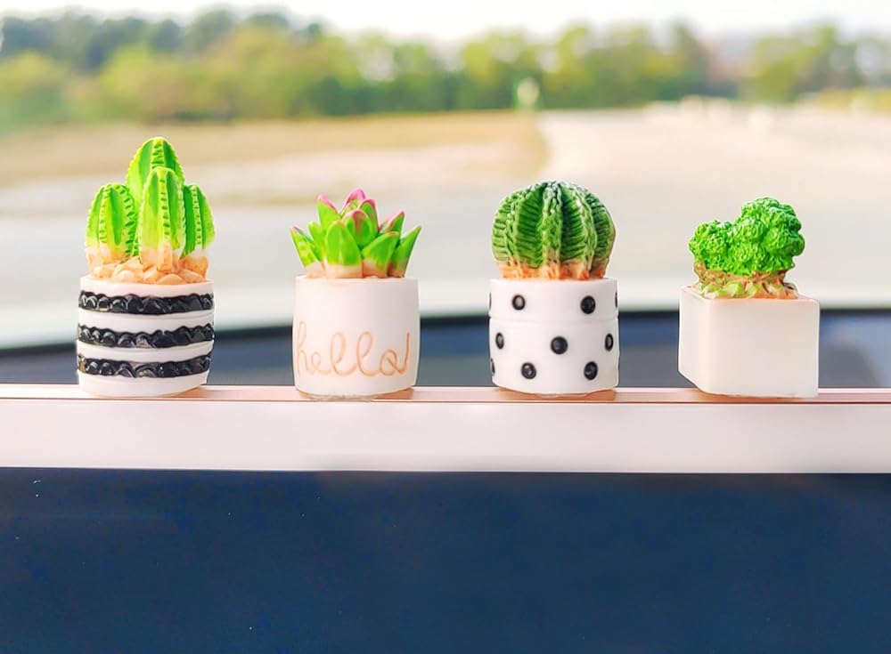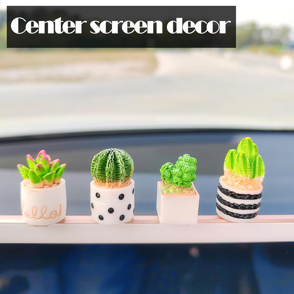 Features -- As car center screen ornaments, they have a moderate size. The potted plants' simulated shape makes your car decoration different, the cute and unique appearance becomes a bright landscape, making your journey energetic and joyful!
