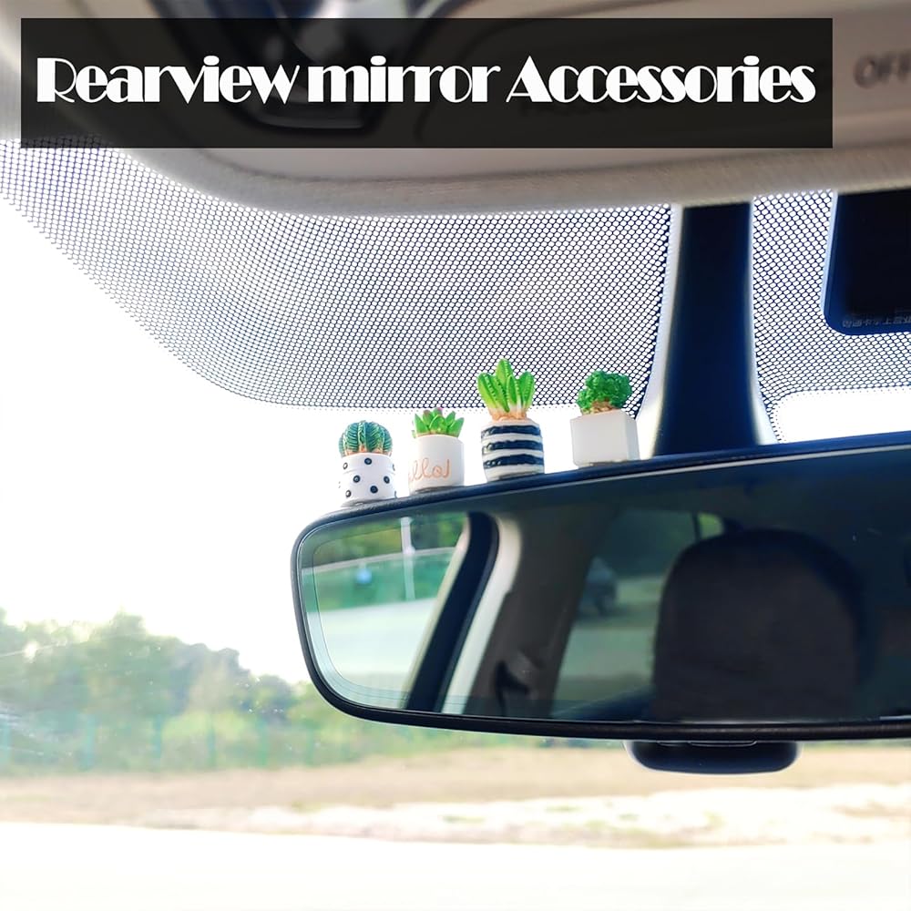 Cute Succulent Plant Car Ornaments for Dashboard, Flower Pots Rear View Mirror Accessories Center Screen Decoration, Dashboard Decor Car Accessories Interior for Women/Men