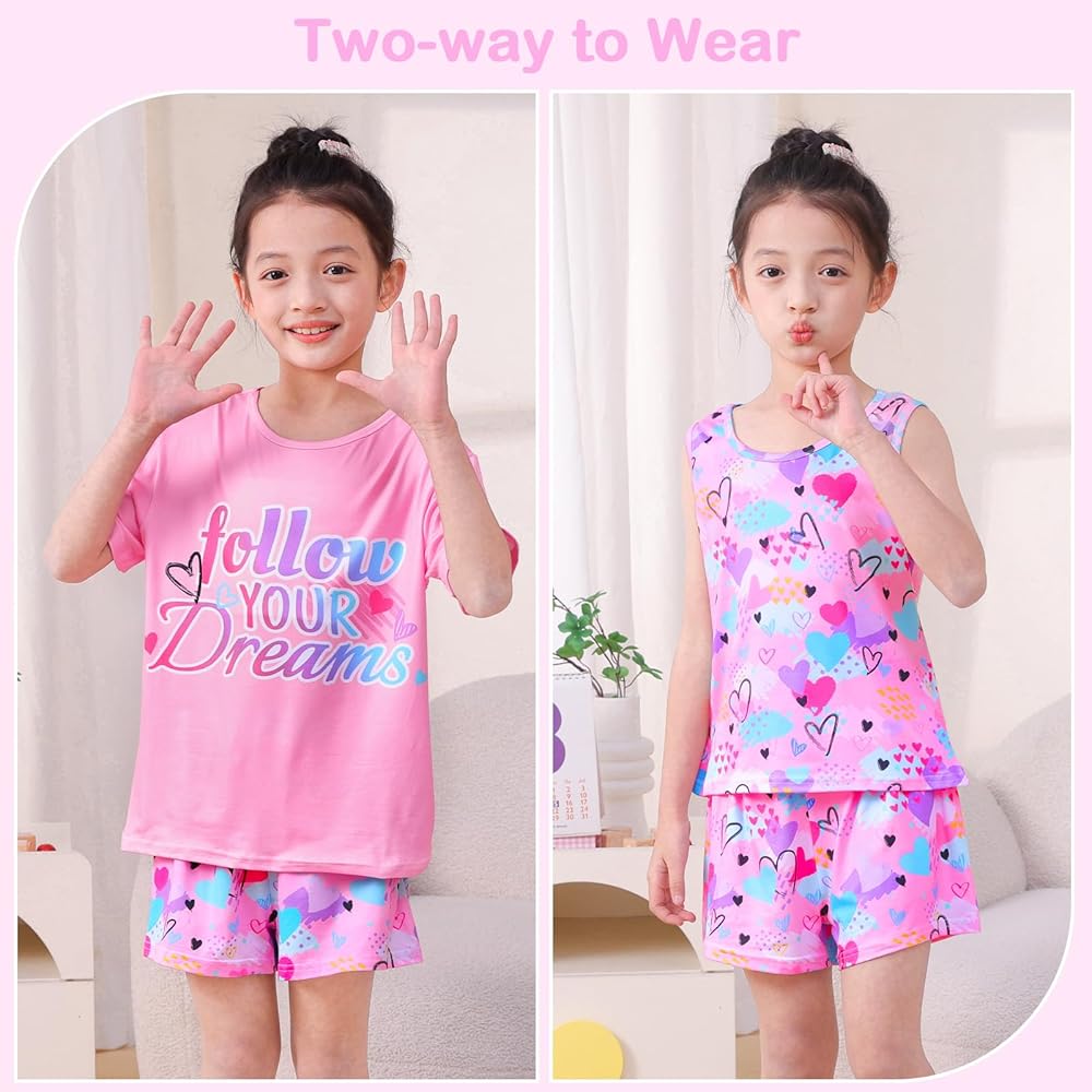 Skin-Friendly Design: The short-sleeve top and tank feature a round neckline, ensuring no tightness around the neck, enhancing comfort and ease of wear for your little one