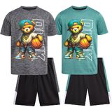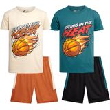 HIGH QUALITY OUTFIT: This 4 piece active shorts set includes two performance t-shirt, and two pair of basketball gym shorts; Skin-friendly, high-quality fabric breathes well to keep your active boy comfortable and cool on a hot day; This boys' sports outfits for outdoor play and activities is also perfect as everyday wear