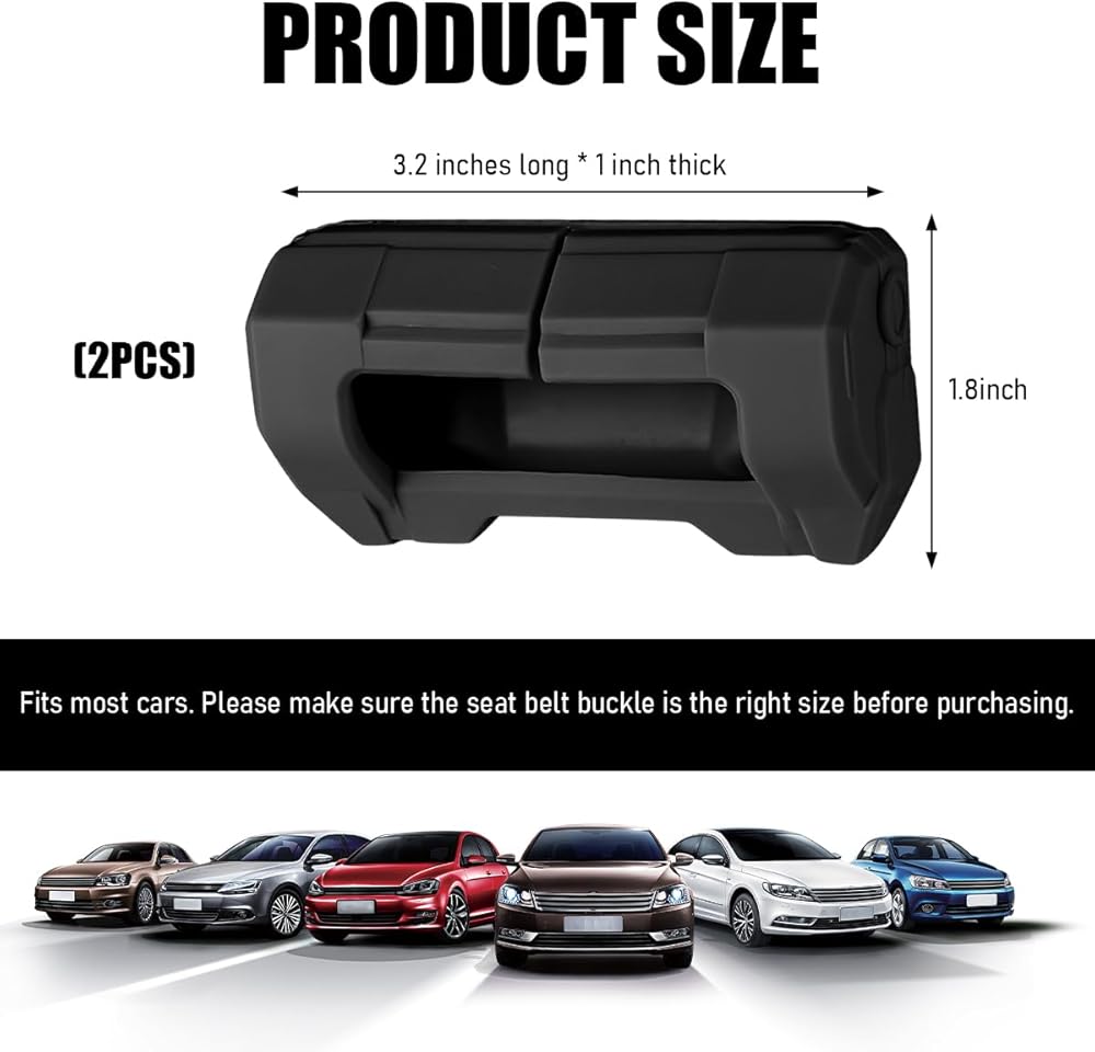 Broad Compatibility: Measuring 3.15×1.77×0.98 inches, these covers are designed to fit most car seat belt buckles. They are compatible with sedans, trucks, vans, and SUVs. To ensure a good fit, it's recommended to check your vehicle's buckle shape and size before purchasing