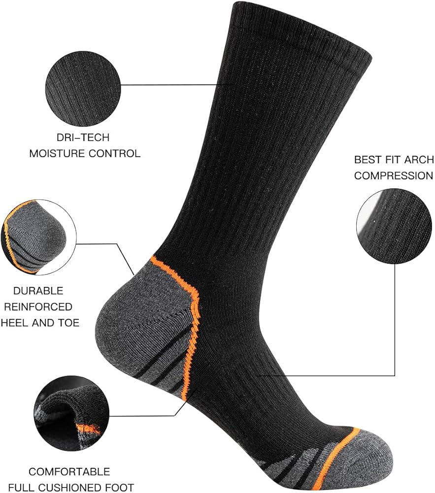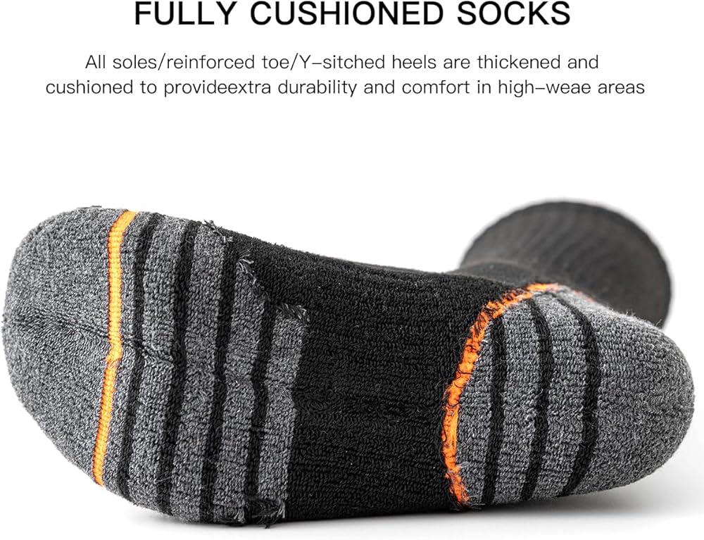 ARCH SUPPORT: Our men's crew socks are equipped with excellent arch support and cushioned sole, provide firm grip and efficient support for shock absorbing, improving your experience during walking or exercises.