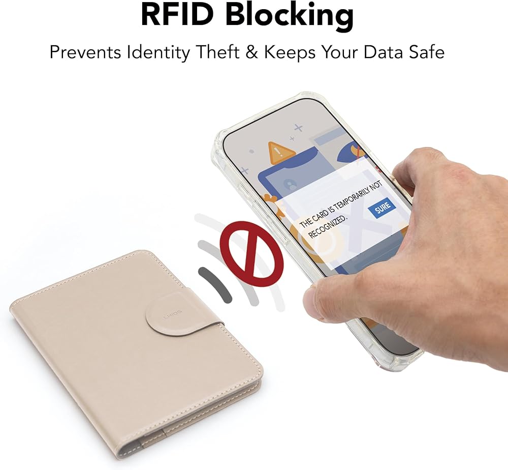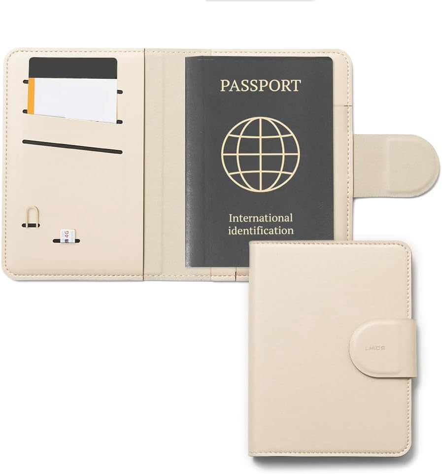 LHiDS Leatherette Passport Holder with RFID Protection, Premium PU Leather, Snap Button Closure, Travel Passport Wallet Cover for Passport, Boarding Passes, Business Cards, Cash (Apricot)
