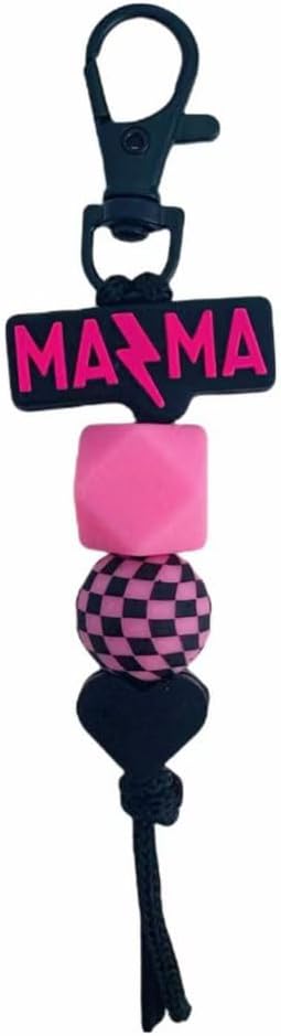 This mama keychain combines a chic black and white chessboard pattern with silicone beads, making it a fashionable and practical accessory for moms.