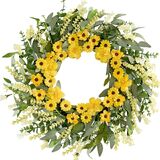 Spring Wreath 22 Inch Artificial Summer Wreath with Yellow Daisy Flowers Green Eucalyptus Leaves Lavender Spring Wreaths for Front Door Home Farmhouse Porch Wall Easter Festival