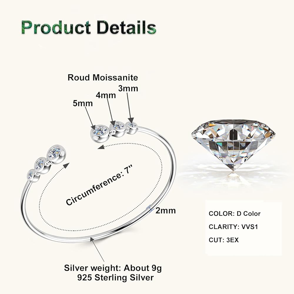 Gemstone: (2pcs)/5mm + (2pcs)/4mm + (2pcs)/3mm round moissanite.
