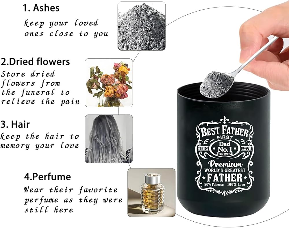【 Dual-Sided Engraved Memorial Urn】Made from high-strength aluminum alloy, this miniature urn features intricate laser-engraved designs on both sides that will never fade. The threaded lid ensures a secure seal, preventing the leakage of ashes, dried flowers, or keepsakes, preserving your cherished memories for the long term with complete peace of mind.