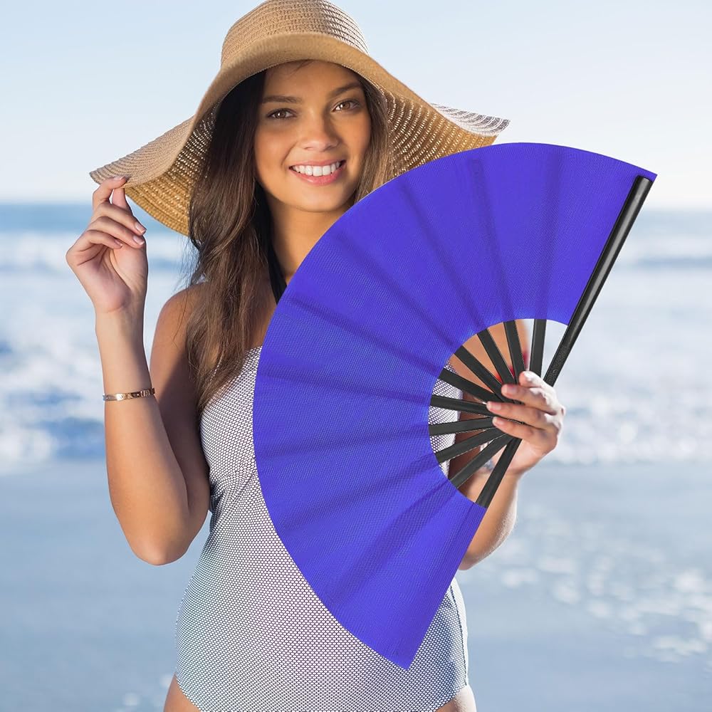 Large Fans for Line Dancing MASTERFUL DESIGN: this folding fan opens and closes effortlessly with a flick of the wrist, producing a crisp, loud clicking sound. It's the perfect prop for performances, stage shows, or dramatic flair.Suitable for men, women and drag queen.