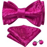 Barry.Wang Bowtie set for men classic self-tied necktie bow tie handkerchief cufflinks paisley flower wedding party tie set