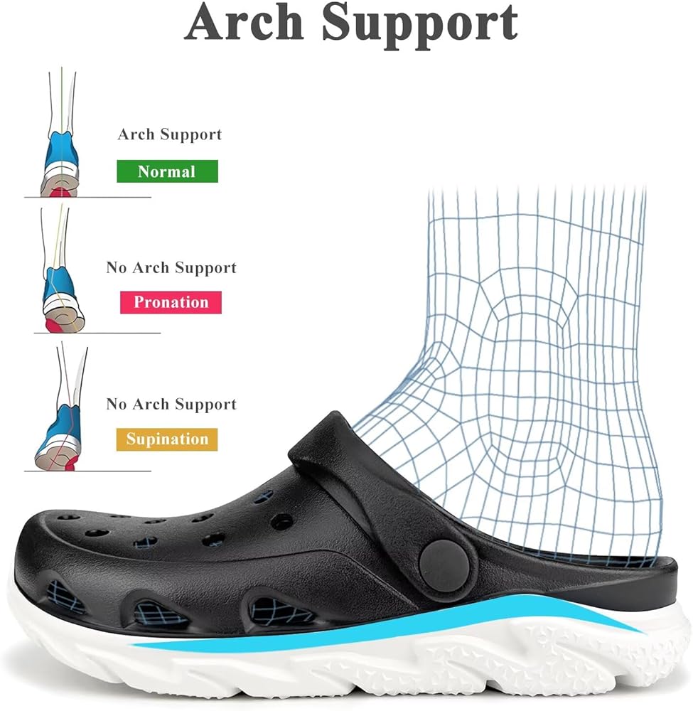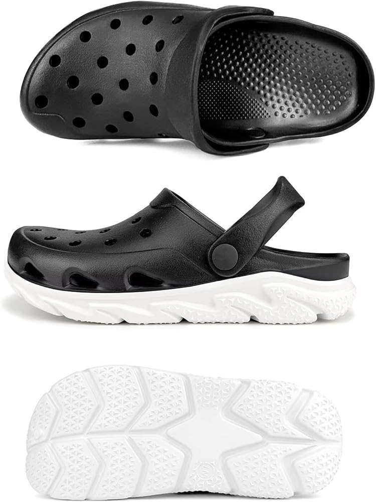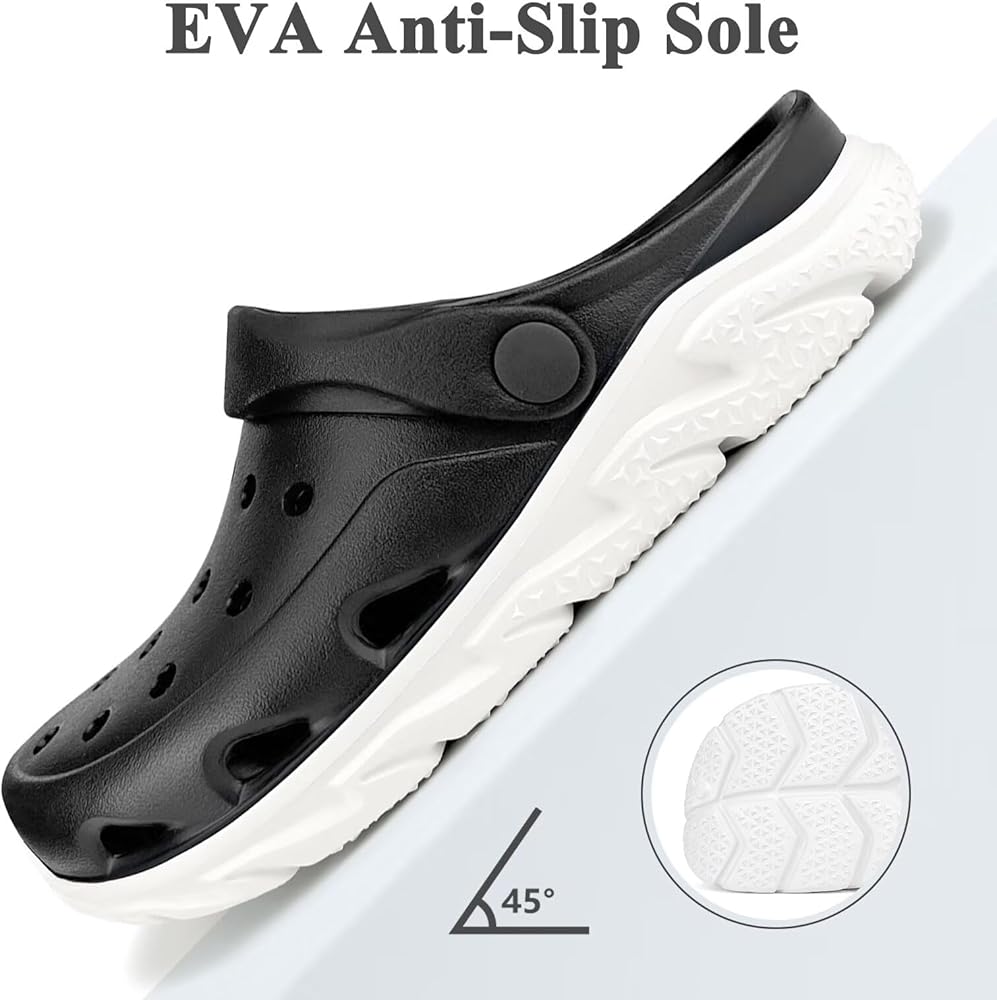 Breathable:Crafted with high quality EVA and strategic drainage holes, these clogs keep feet cool and dry even during extended wear. Quick-drying design prevents odor buildup.