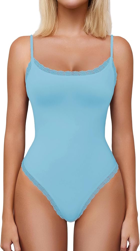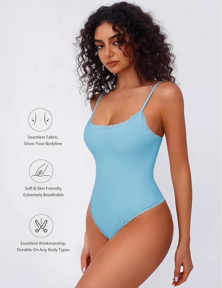 Sexy Lace Trim:The summer bodysuit top for women is adorned with exquisite lace trim at the neckline, which adds a romantic touch and elevates the overall look. This square neck bodysuit highlights the collarbone.